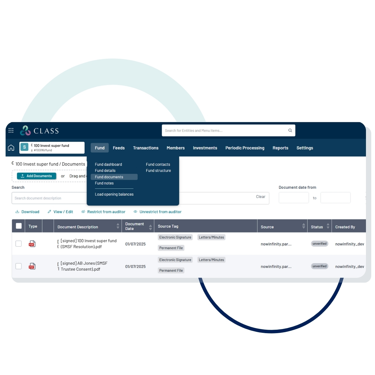 Newly established SMSFs and Trust entity documents can now be seamlessly pushed from NowInfinity to Class Super. The signed establishment documents will be loaded and tagged into the Class Document Management System (DMS) with no manual handling.